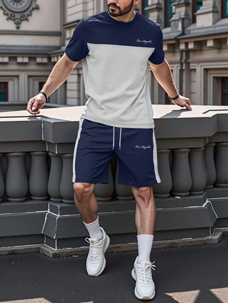 Move beyond monochrome. We’ve embraced the bold and sophisticated color-block trend. The combination of a strong, masculine Navy Blue on the shoulders and shorts with a youthful Heather Grey on the torso creates a visually striking and harmonious look. The design is elevated by clean white side stripes on the shorts and a finely embroidered “Los Angeles” script logo, providing a premium, aspirational feel.