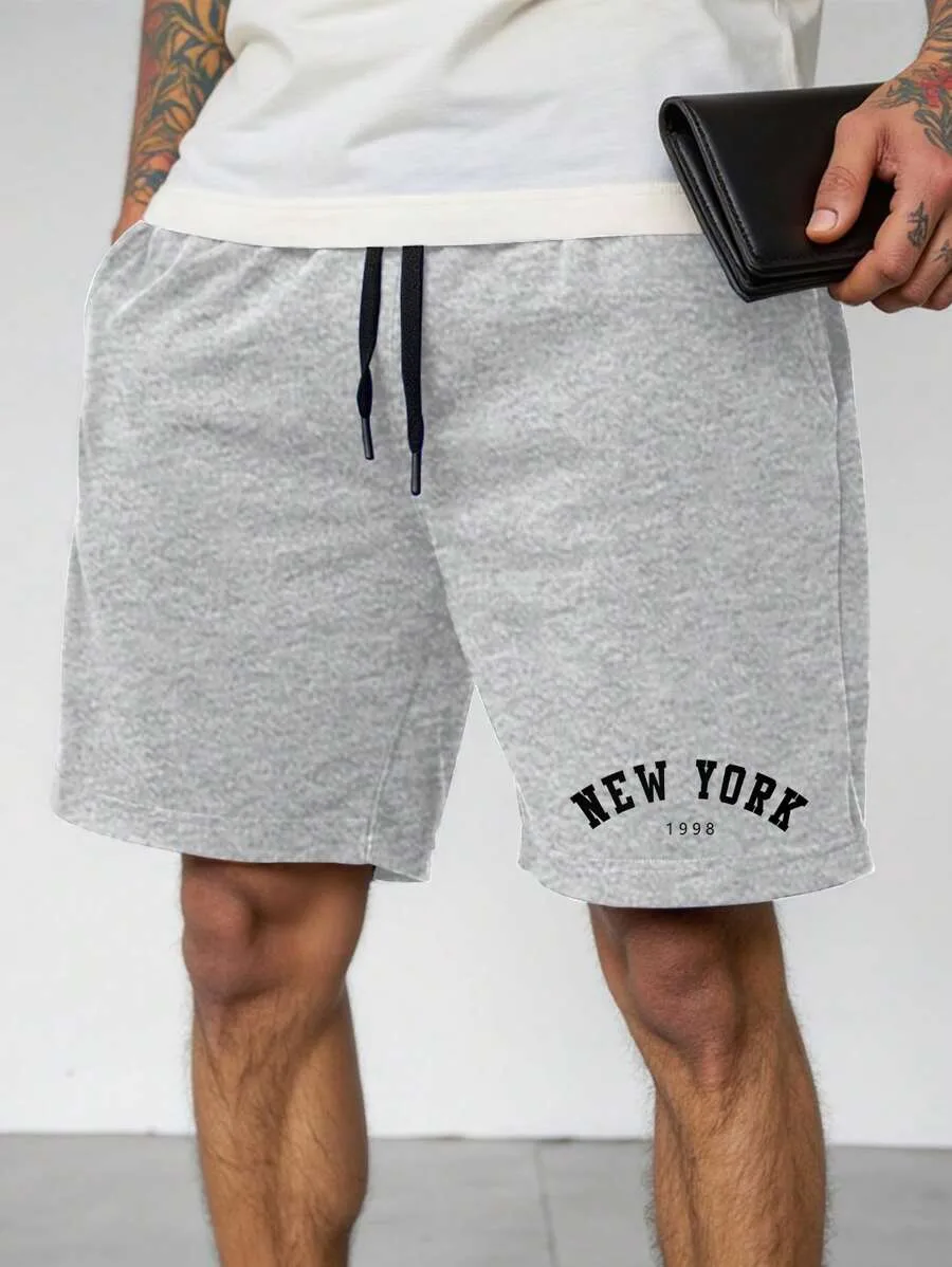The design features a classic, arched “NEW YORK” text in a collegiate-style font, a timeless look that evokes a sense of heritage and Americana. The “1998” underneath adds a specific touch of retro nostalgia, tapping into the popular trend of 90s-inspired fashion. It’s a minimalist graphic that adds character without being loud, making the shorts easy to pair with almost anything.
